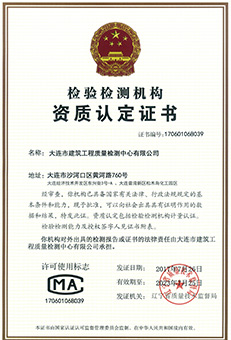 大連市建筑工程質量檢測中心有限公司是2009年在大連市工商行政管理局注冊成立的第三方檢驗檢測機構,其前身為大連市建筑工程質量檢測中心,始建于1985年,為大連市建委設立的行政檢驗檢測機構。公司經歷了35年的發展,現已具備開展建筑工程可靠性鑒定及特種工程施工(結構補強)、工程質量司法鑒定、工程質量檢測、公路市政工程檢測、水利工程質量檢測、環境監測、地基基礎勘察設計及施工、船級社無損檢測、特種設備無損檢測、金屬理化試驗等業務。